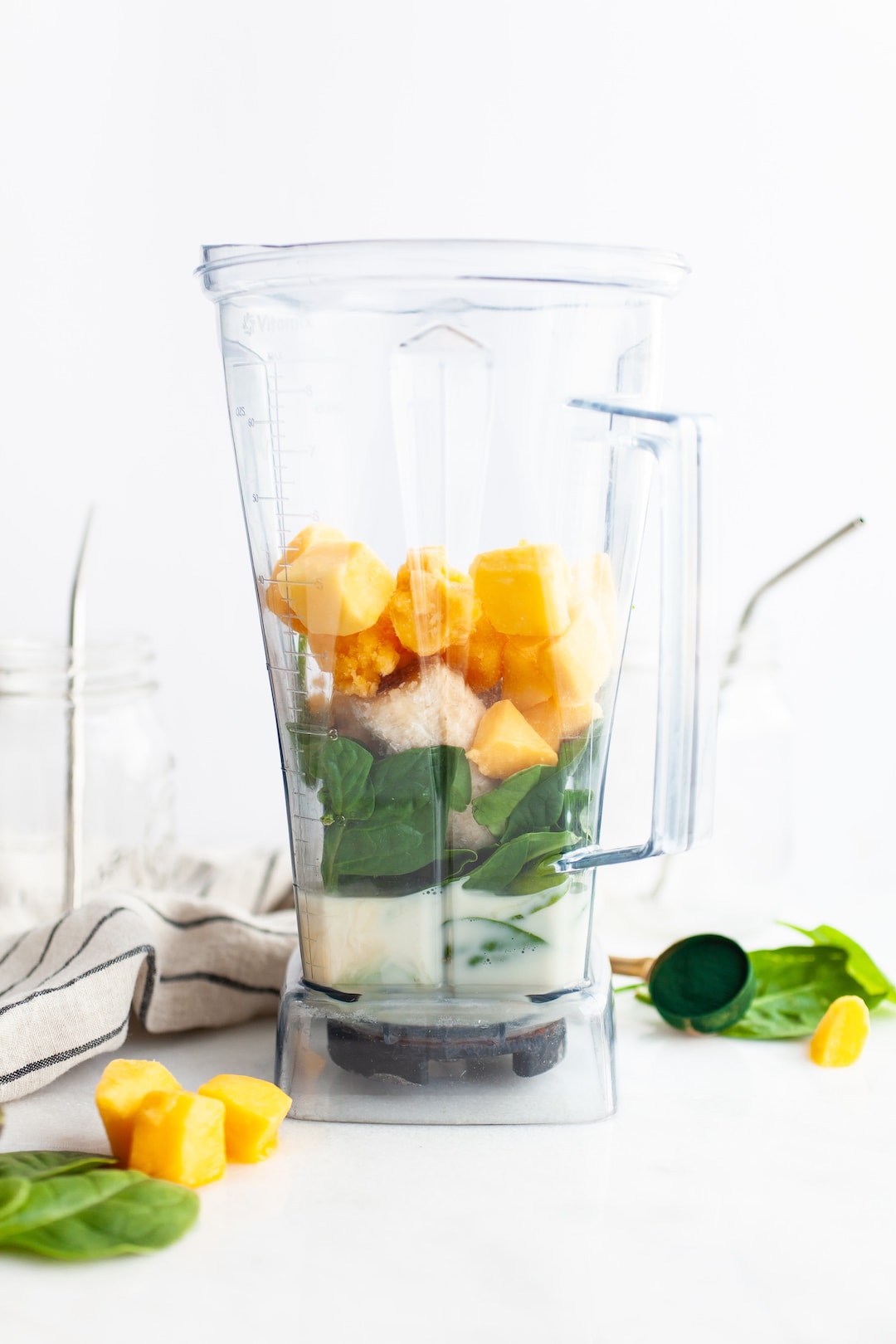 - Add all ingredients to a high speed blender and blend for 30 seconds or so until completely smooth.