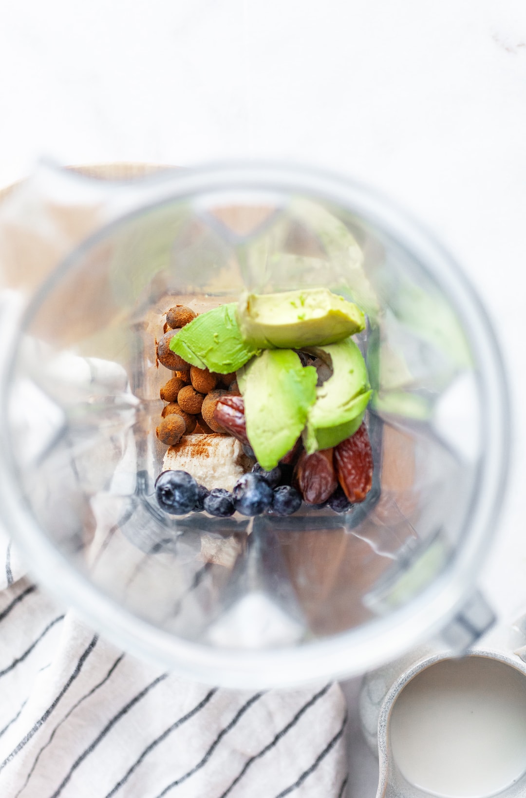 To make this delicious and healthy smoothie you need only 7 ingredients! These whole-food, natural ingredients bring in sweetness (but not too much!), just a little tartness, and a touch of earthy flavor to every creamy avocado smoothie.