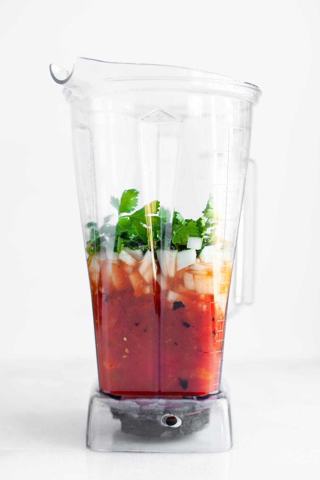 - Loosely chop the onion and add to the blender along with the rest of the ingredients.