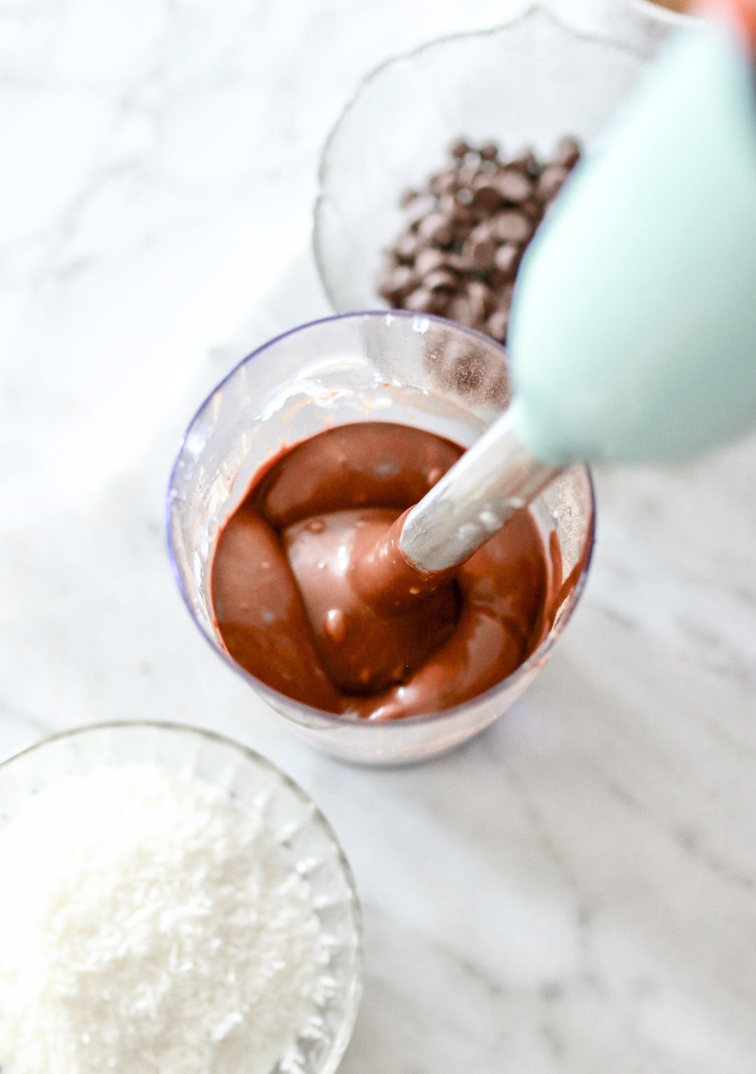 To make the fudge I used the following ingredients which I added directly to the hand blender jar: