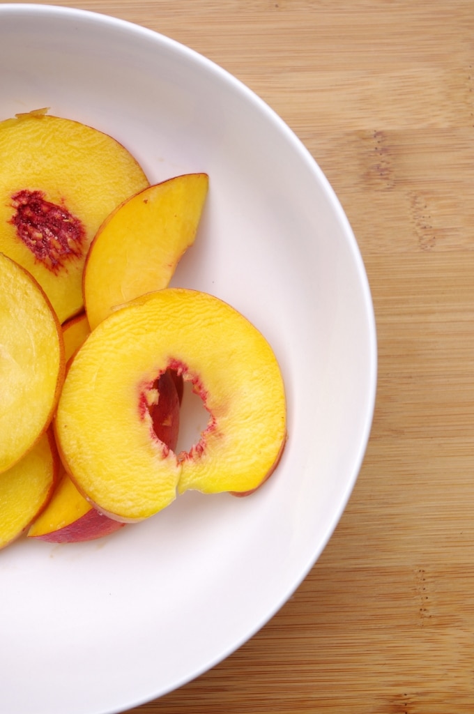 - 2 ripe peaches , each cut into 8 wedges, or sliced into rounds