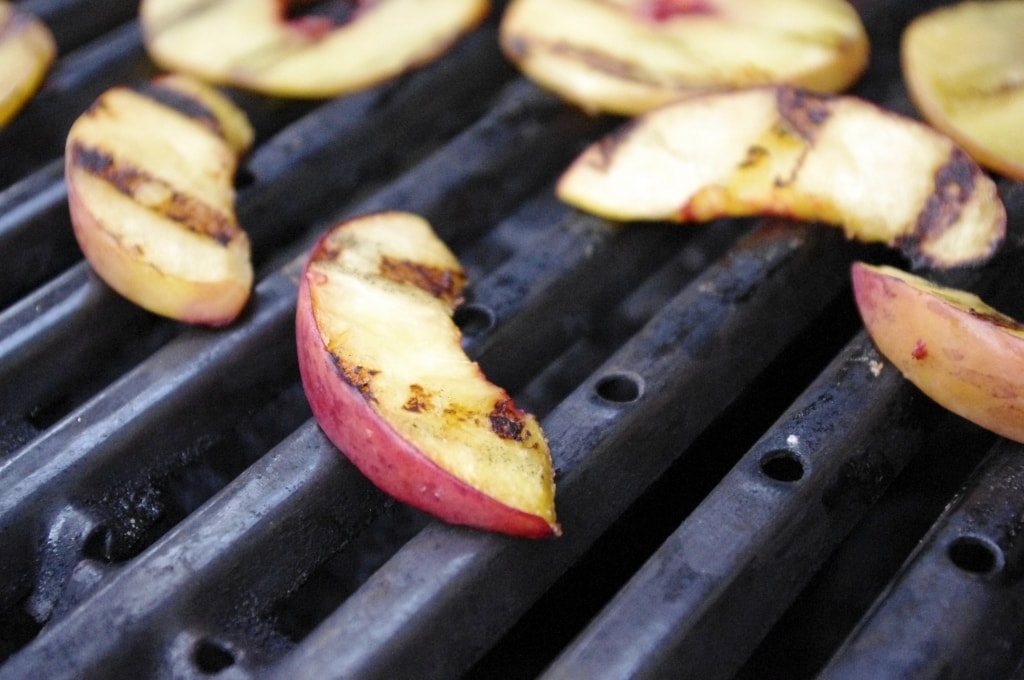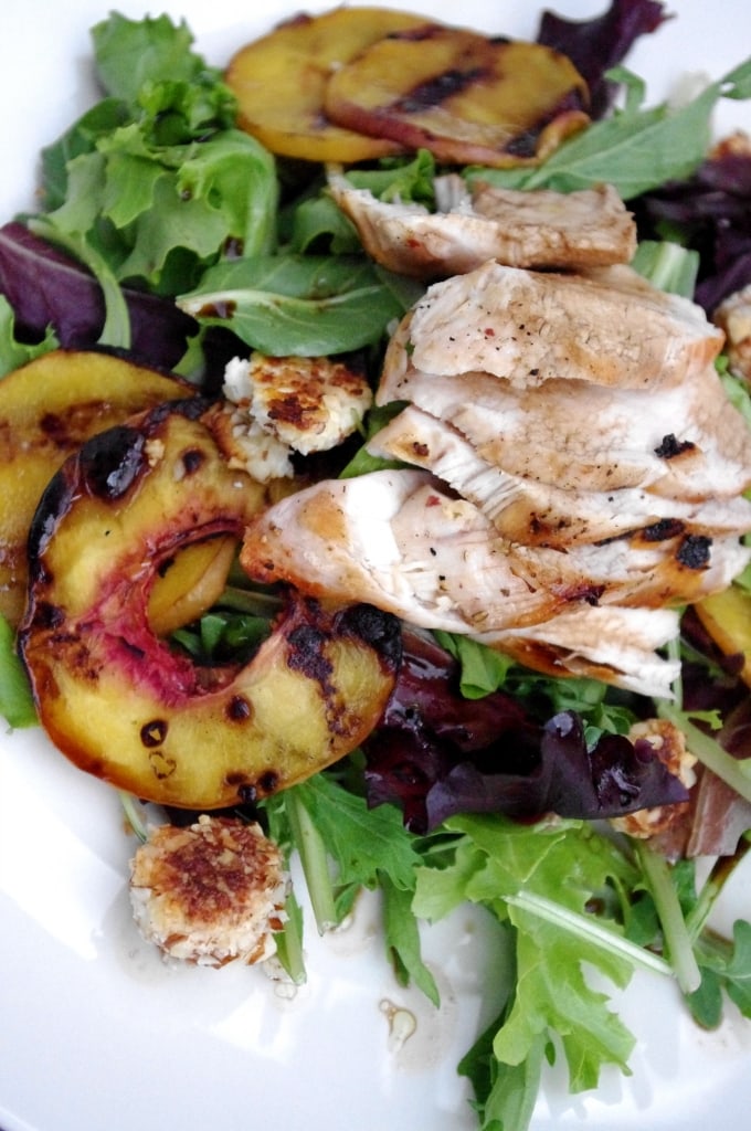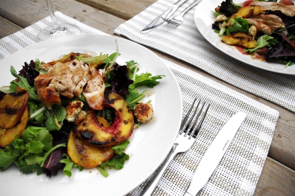 Peaches, the summertime staple that they are, were a perfect choice for the salad. They taste amazing grilled and they also have a lot of nutritional value. They are very high in vitamin A, and vitamin C, and also contain a great amount of potassium (almost 20% of the required daily intake!).