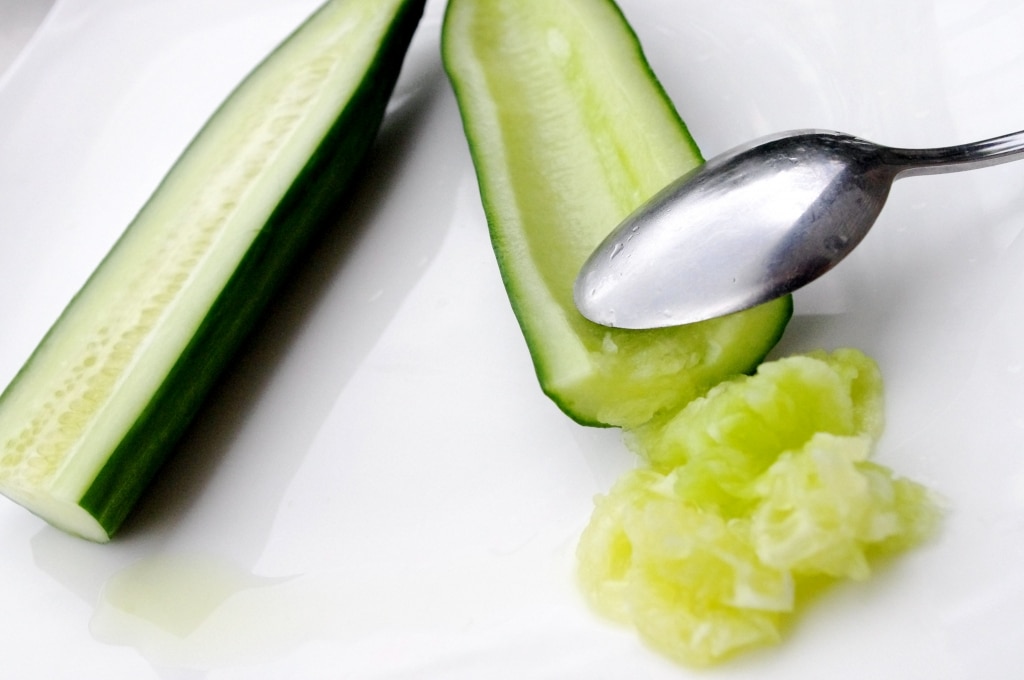 - 1½ cup thinly sliced English cucumbers, cored (very important, the seed core must be scraped out)