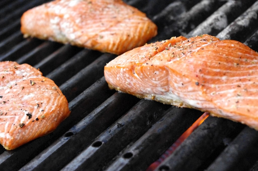 Because the potatoes take about 25 minutes to cook in the basket, I waited another 10 minutes or so and then put the salmon on the grill. For the salmon I left it as is, just lightly seasoned with salt and pepper. The salmon will take about 15 minutes!