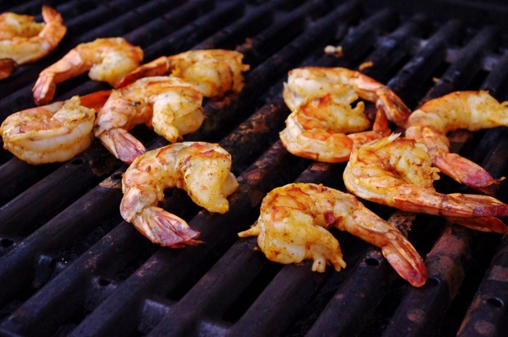 - Grill shrimp on BBQ for 4-5 minutes or until pink and cooked through. Set aside.