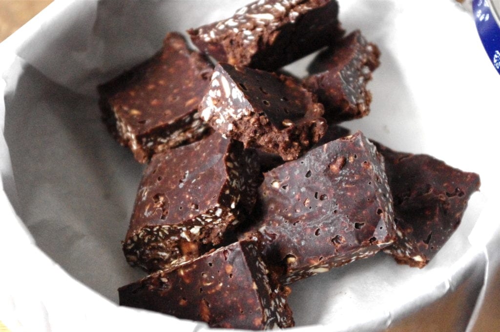 - Put in the freezer for about an hour, then cut into bars.