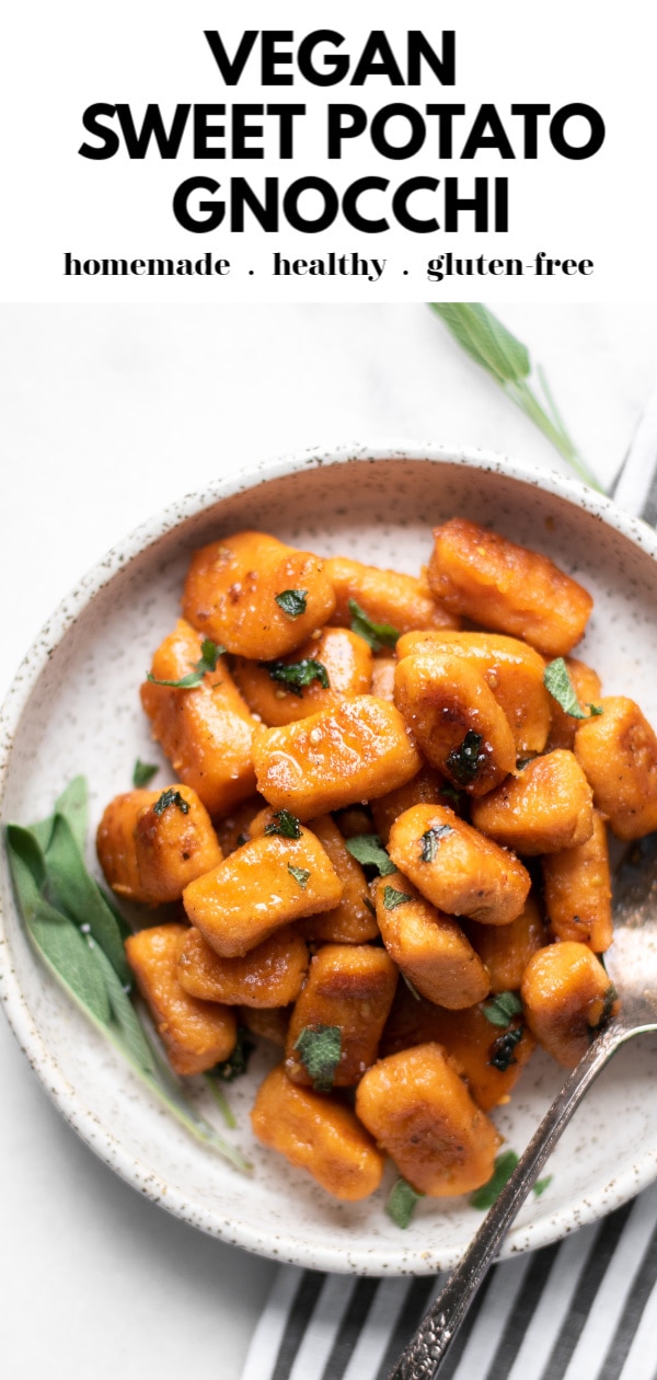 Have you made your own homemade sweet potato gnocchi or regular gnocchi before? I’d love to know what combination of ingredients you use or if you prefer to go with pre-made! Tell me about it in the comments and be sure to pin the photo below the recipe to save this one for later!