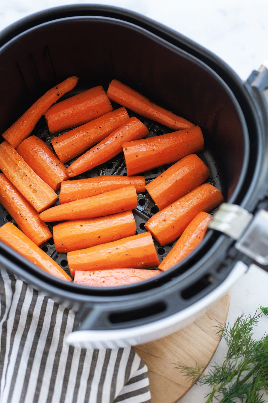 - Cilantro Lime: Bring in the lime with this delicious twist! When the carrots are done cooking in the air fryer, omit the dill, and instead toss them in a bowl with 1 tablespoon of lime zest and 2 tablespoons of fresh chopped cilantro.