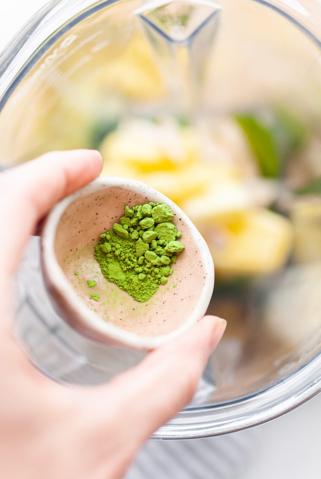 4. Sprinkle in the matcha powder then squeeze in the juice from 1/2 a lime.