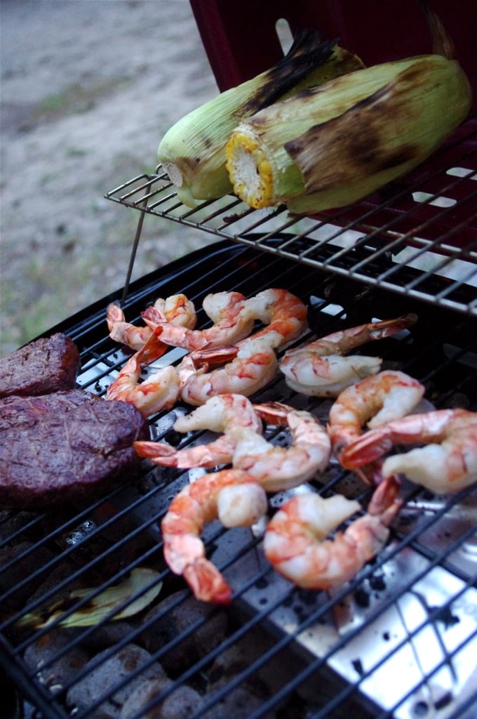 The first night in Radium we decided to BBQ. Justin brought our handy dandy little mini grill. We fired it up and made a wonderful dinner of grilled prawns (for me), steak (for Justin… although I do eat meat I am not a big beef eater, and I consider myself a flexitarian), grilled corn-on-the-cob, and a garden salad!