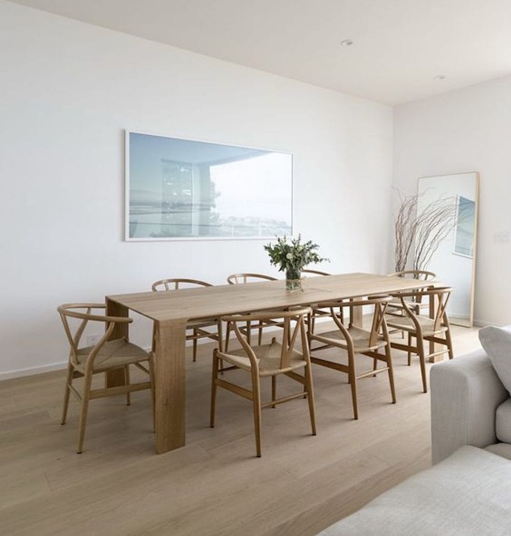 Justin and I love to host friends and family and for years we’ve felt like our space worked but was a little cramped. With our new kitchen and dining room layout we believe we will be able to host often and with the little bit of extra space we need for everyone to gather and relax. Our dining room has that earthy Scandinavian vibe with a touch of coastal flare (if I can’t live by the ocean, I’ll bring a bit of it inside!).