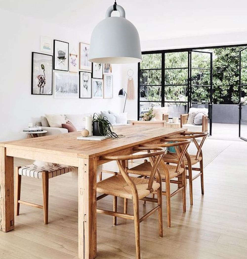 For this space the centrepiece will be our beautiful reclaimed wood dining table that spans over 9ft. We’ve had this table since we got married and it’s hosted many gatherings and we hope there will be many more. Our goal is for the dining room to be it’s own unique space but still blend seamlessly into the kitchen and living areas. We will be painting the entire house Chantilly Lace by Benjamin Moore and feel it will create the perfect clean and bright backdrop for the earthy, neutral, minimal and inviting decor.