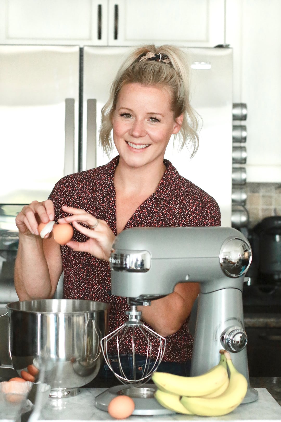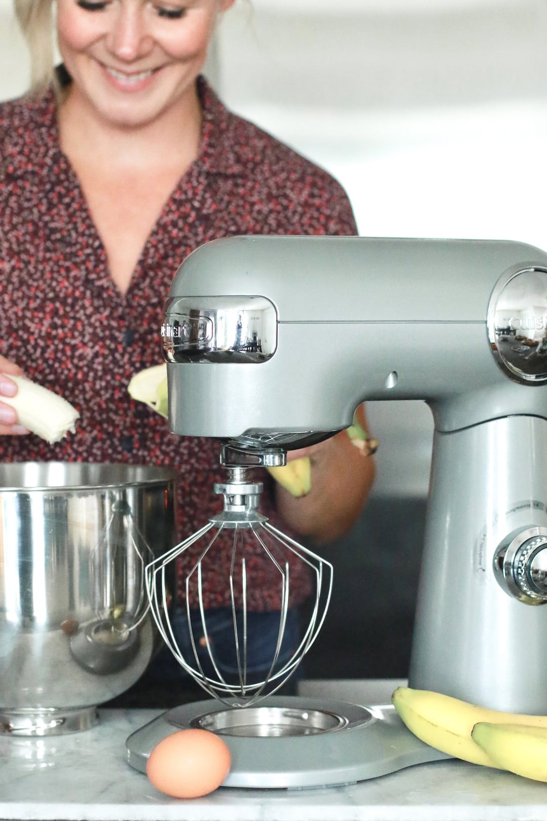 I picked up my donut pans at a couple of local homeware stores but you can also find them online on Amazon. While you can definitely mix everything together by hand in a bowl, I find the Precision Stand Mixer does a better job and eliminates most of the lumps from the mashed banana.