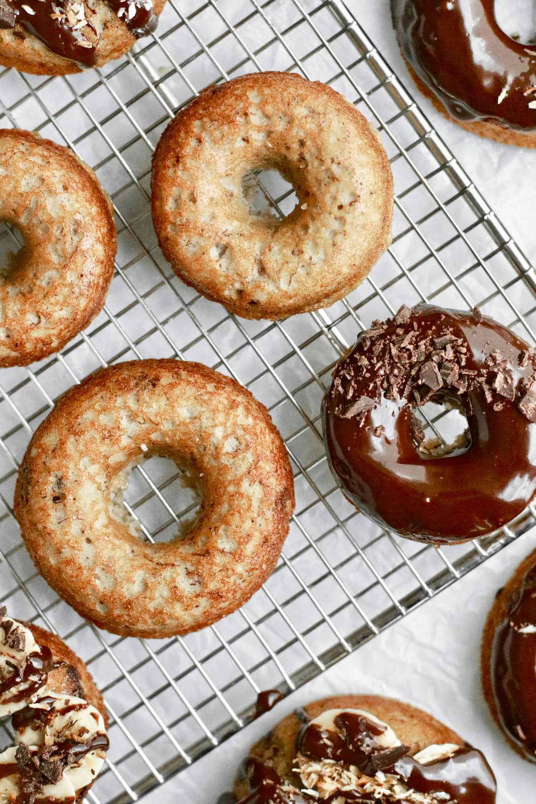 Over the years I’ve been experimenting with grain-free baking and I’ve found the right combination of flours can create the most delicious cake-like texture – perfect for a baked cake donut (versus a yeast donut).