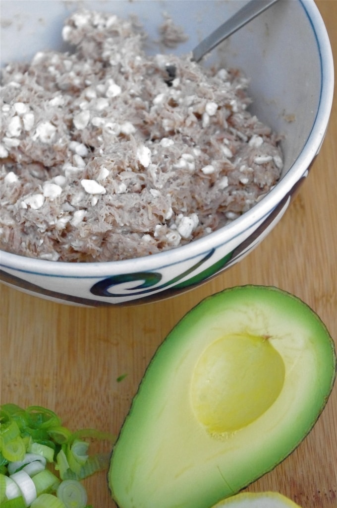 - Add in avocado, green onion, corn, and cottage cheese and fold ingredients in with tuna mixture.