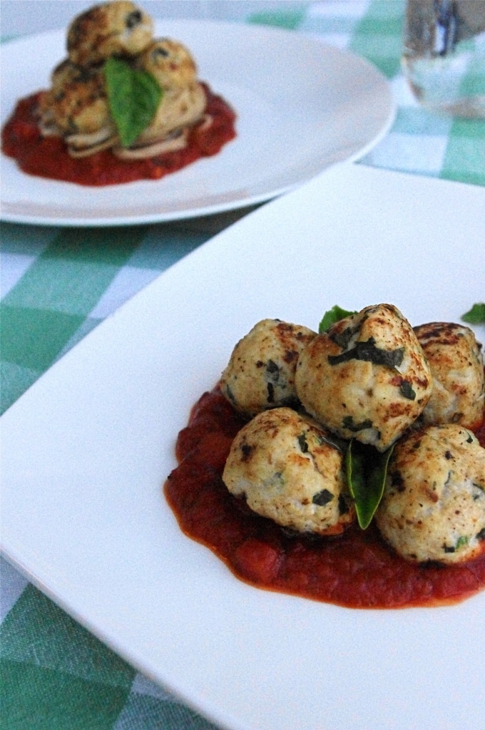 I made these for dinner tonight and just like you said they are little moist balls of flavorful heaven! I did not have fesh basil at home so used dried basil spice and I did not have time to brown them fisrt, just put them on a foil covered cookie sheet and baked for 20 minutes. I would suggest spraying the foil with cooking spray so they remove easier. I served them with sundried tomato pasta, homemade tomato sauce and some green beans. Ohhh so yummy!!