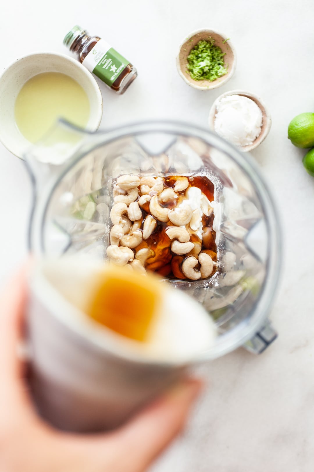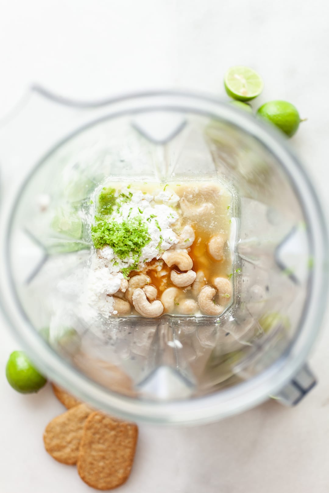 4. Make the key lime filling by adding the soaked cashews and remaining filling ingredients to a blender, and blend until smooth.